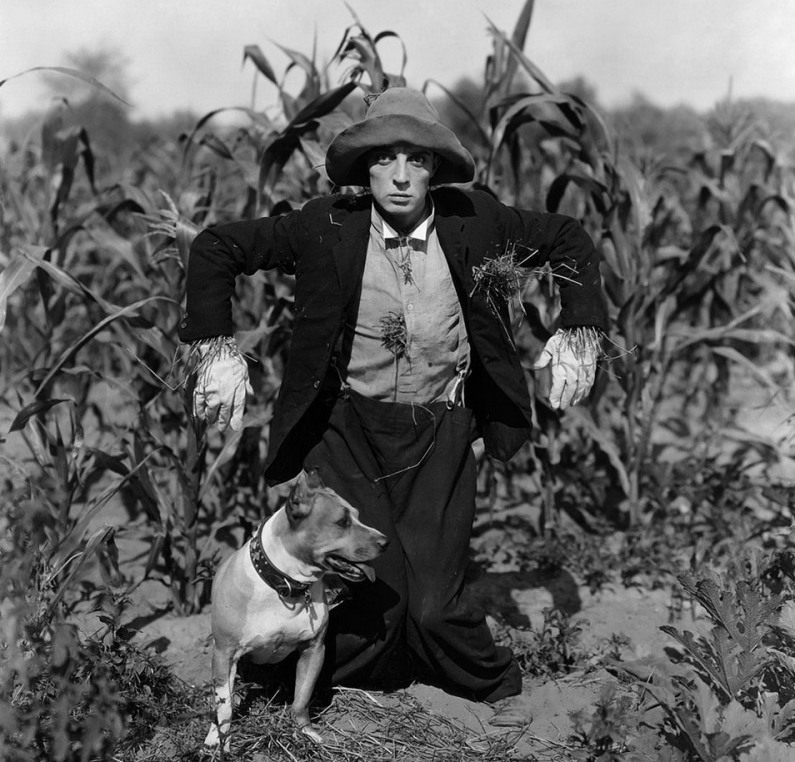 Llamé a Mateo y a Lucas a la sala, cerré las cortinas, prendí el proyector y vimos El espantapájaros / The Scarecrow (1920). Nunca antes los vi reírse como en esos 20 minutos en los que cerraron la brecha de 98 años que separaba la primera proyección de la película, con la nuestra; mientras que con palabras como cool, extremo y pro, analizaban, concluían y reafirmaban que ese hombre, el de la mirada más profunda que yo haya mirado, también es desde ahora, para ellos, un héroe.
